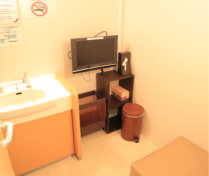 採尿専用のお手洗いがありますので、そこで採尿を行います。